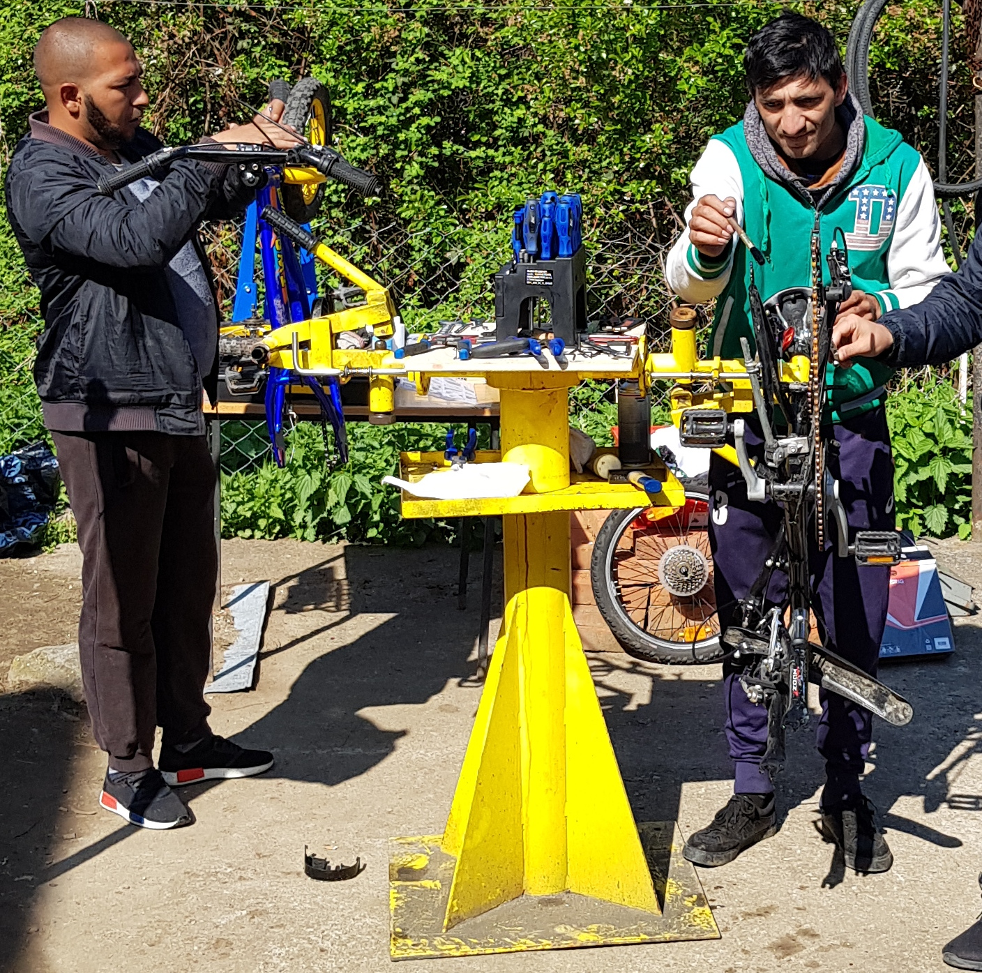 Mit Minijobs wie: Holz sägen und spalten, mit eigenen und gespendeten reparierten Fahrrädern und Hacken bei Bauern Arbeit zu finden. Mit Ausbildungen, ihnen zu neuen Perspektiven und Sozialkompetenzen verhelfen.